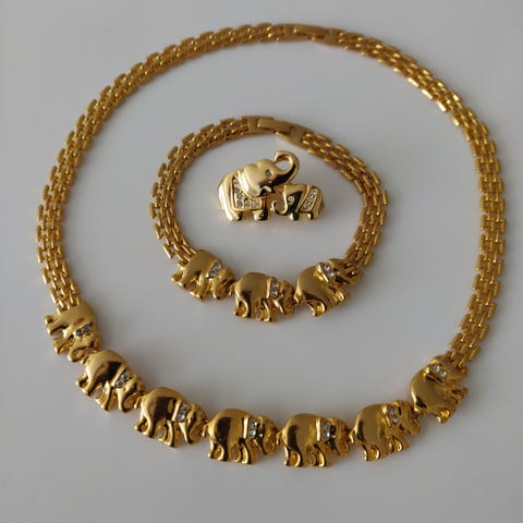 Naisten korusetti, johon kuuluu rannekoru, sormus ja yksi koukkukiinnitteinen korvakoru. Korut on valmistettu pronssista ja niissä on kristallikoristeita. Setti toimitetaan pyöreässä tuohisessa rasiassa, joka näkyy kuvissa. Sopii käytettäväksi yhtenäisenä kokonaisuutena arki- tai juhlapukeutumisessa.