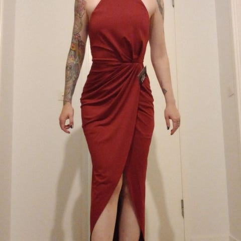 Kaunis, klassinen ilta- tai juhlamekko koossa M. Mekko on beigeä sävyä ja valmistettu polyesteristä. Mallissa on hihaton yläosa, V-pääntie edessä ja takana sekä leveä vyötärökaitale. Vetoketju takana, kaksi kangaskerrosta ja vuori. Halkio sivulla. Helma on pitkä ja laskeutuva. Sopii juhla- ja iltatilaisuuksiin, esimerkiksi kaasolle.