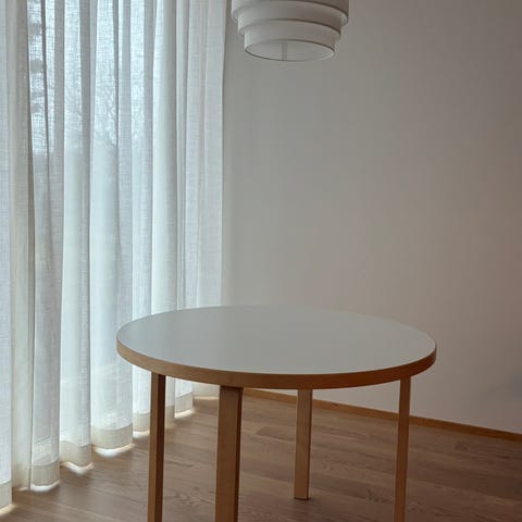 Artek 90a pyöreä pöytä valkoinen