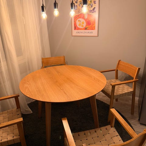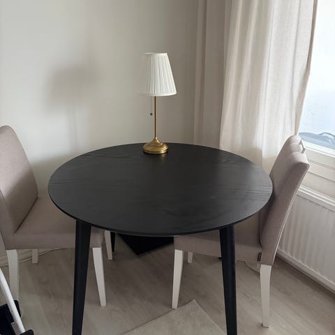 Pyöreä pöytä ja kaksi tuolia (haku jkl vielä tämän viikon)