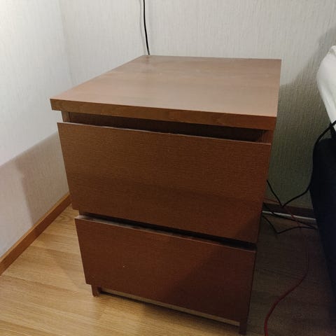 Yöpöytä mäntyä laatikolla ja hyllyllä