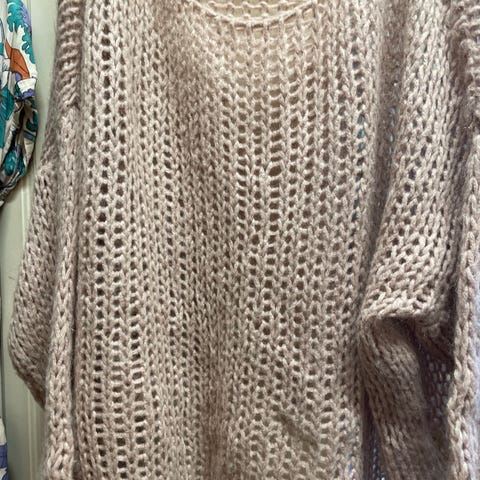 By Pias Bohemiana, vanha roosa neule jota käytetty vain yhden kerran sillä itselle koen liian lyhyenä. Pituus 5cm, leveys kainalosta kainaloon 70cm