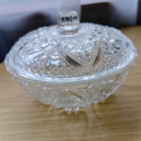 Lasinen kulho kannella