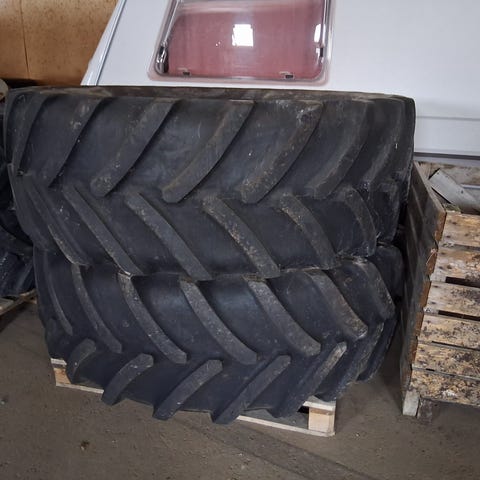 Traktorin rengassarja, jossa koko 540/65 R28. Renkaat on asennettu punaisille teräsvanteille, joissa useita pultinreikiä. Karkeakuvioinen maatalous-/traktorikuvio soveltuu peltokäyttöön ja maastoajoon. Sopivuus riippuu traktorin mallista, pulttijaosta ja akseliratkaisusta.