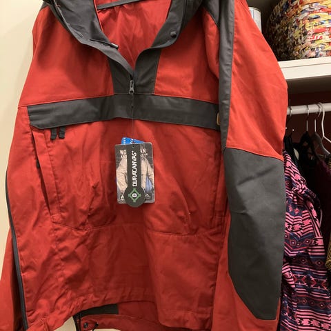 Kiva vähän pidetty anorakki. Edessä hienon hienoa jälkeä. Siitä kuva. Tässä laatu kohdallaan.