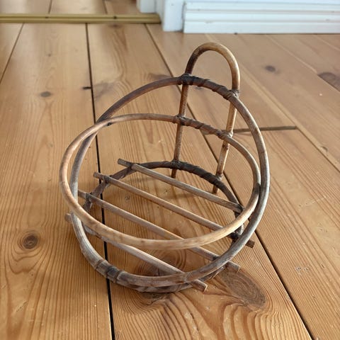 Ikean rottinkinen telinen kukille tai muuhun säilytykseen. Hyvässä kunnossa. Vain nouto