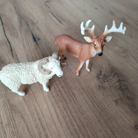 Eläinfiguurit leikkieläimet muovi. Kuvissa näkyy useita erilaisia eläinhahmoja, kuten koiria, norsuja, hylje ja muita villieläimiä. Figuurit ovat pienikokoisia muovisia leluja, jotka soveltuvat esimerkiksi roolileikkeihin ja eläinaiheisiin leikkeihin. Sarja sisältää useita erillisiä hahmoja, jotka voidaan yhdistää muihin Schleich-eläinfiguureihin ja -leikkeihin.