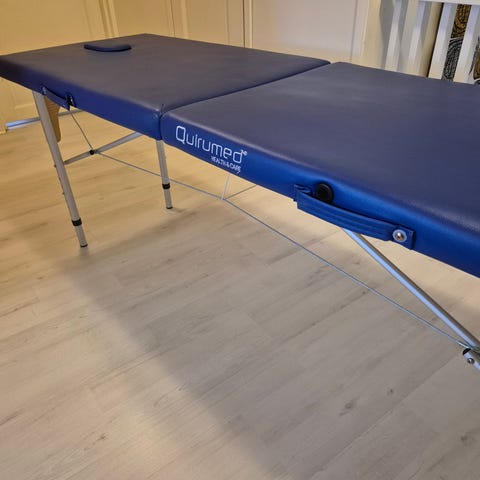"Quirumed" kannettava hierontapöytä (leveys erittäin hyvä eli 70cm ja pituus 194cm) säädettävät puiset jalat.