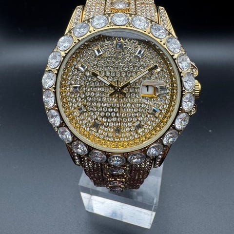 Chezard vuodesta 1897 automaattinen kokonaan rhinestone-kivillä koristeltu kelloFormer biggest and best known manufacturer for movements with "jumping second".Watch details:Mekaaninen liike automaattisella kierroksellaruostumattoman teräksen kotelo vedenkestävä 3 ATMruostumattoman teräksen taittuva claspkellon halkaisija: noin 42 mm ilman kruunuapaksuus noin 13 mmremmen kokonaispituus noin 22 cmruostumattomasta teräksestä takakansihihnan leveys 28 mmhehkuvat indeksit ja osoittimetAlkuperäinen laatikko alkuperäisellä takuukortilla, historiakortilla ja sertifikaatillaerittäin hyvä kunto, käyttämätönKuvat ovat osa kuvaustavakuutettu toimitus tarjolla