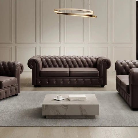 Chesterfield sohvaryhmä, Kensington nahkasohva, Goslar nahkaiset nojatuolit