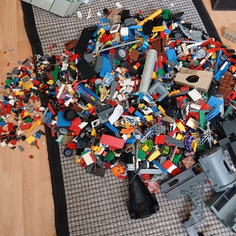 Hyväkuntoisia legoja, erilaisia osia, renkaita, joitakin hahmoja, ohjeita. Hinta 100€. Vain nouto.