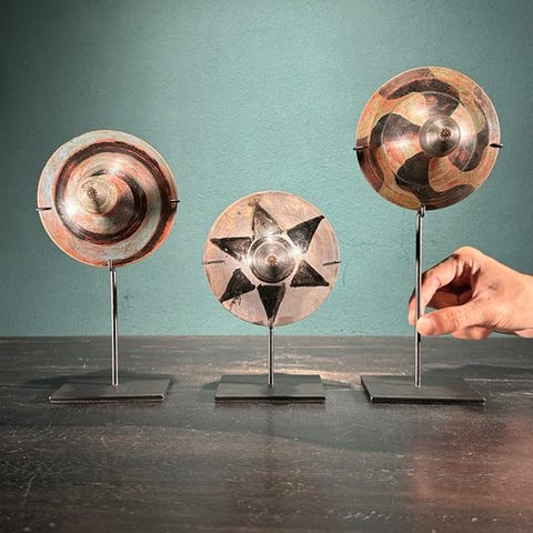 Setti 3 wooden pyöritettä Lombokista.Sisältää räätälöidyt metallijalustan.Erittäin koristeelliset esineet.Noin mitat, mukaan lukien jalusta:Pyöreäpyörä Setti 1 : Korkeus 21 cm Leveys 6 cmPyöreäpyörä Setti 2 : Korkeus 19 cm Leveys 6 cmPyöreäpyörä Setti 3: Korkeus 19 cm Leveys 8 cmPaino: 1000 gHUOMAUTUS- Yksi tai useampi kuva esittää tyyliteltyä vastaavan esineen kuvastoa. Myytävänä olevan esineen täsmällisistä yksityiskohdista katso muut kuvat. Stylisoidussa valokuvassa mikään esine ei sisälly myyntiin.- PAINO MÄÄRITYS SISÄLTÄÄ PAKKAUKSEN.TOIMITUS- Esine toimitetaan seuranta- ja jäljitysnumeron kanssa DHL Parcelin, DPD:n tai postNl:n kautta. Seuranta päivitetään Catawiki-lotissasi, kun pakettisi on jätetty postiin.- Tarkista säännöllisesti, ettet menettäisi pakettiasi takaisin meille, jolloin ostaja vastaa toisen lähetyksen toimituskuluista.- Seurannan osoitteet Espanjaan ja Portugaliin käytä tätä linkkiä ja lisää Catawiki-lotistasi saamasi seurantanumerohttps://clientesparcel.dhl.es/LiveTracking/HomeEMME YHDISTÄTOIMITUSTA!!!Jos sinulla on kysyttävää paketistasi, ota meihin yhteyttä Catawiki-viestipalvelun kautta. Pyrimme vastaamaan 3 työpäivän kuluessa.