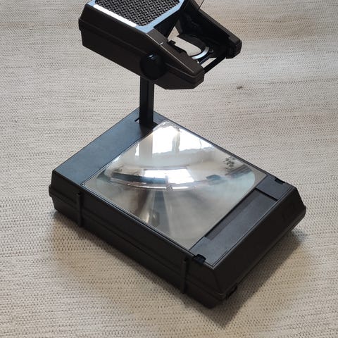 Hyväkuntoinen 3M Piirtoheitin välttävällä kuljetuslaatikolla.