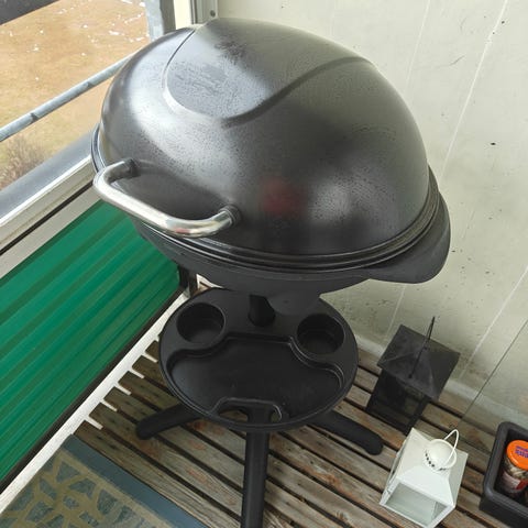 Sähkösavustin ja sähkö grilli sekä Muurikka halkaisija 48 senttiä, kolme ruuvattavaa metalli jalkaa. Kaikki pois kerralla.