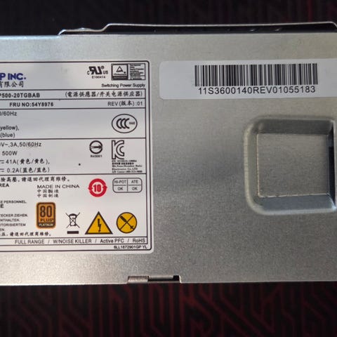Lenovo Thinkcentre M720s alkuperäinen virtalähde. Saattaa sopia muihinkin saman sarjan koneisiin. Irrotettu toimivana.