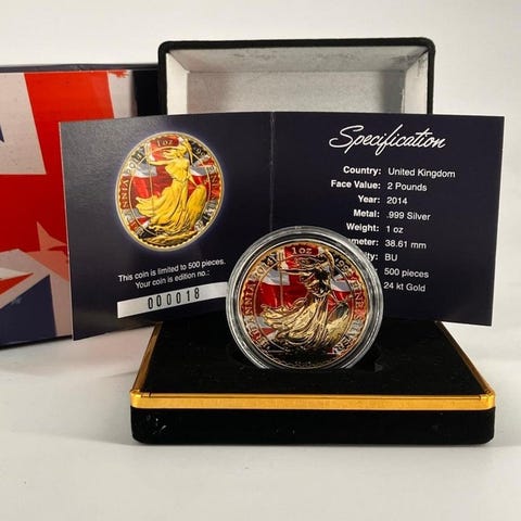 World CoinCanadaSilver .999 Coloured 1 Oz. 5 Dollars (Elizabeth II) Selective Gold + Platinum finishMintage: 500 units 5 Dollars - Elizabeth II (4th portrait; SML Bullion Coinage with security marks and radial lines) - 20152014-2022Coins › Non-circulating coins: SMLSilver (.9999) • 31.110 g • ⌀ 38 mmKM# 1601, N# 58596--------------------------------------Shipping NoticePlease note that we do not offer combined shipping. Each item purchased will be shipped individually, with separate shipping costs applied to each order.This policy allows us to ensure careful handling and faster, safer delivery of every piece.We appreciate your understanding and remain at your disposal for any further clarification.