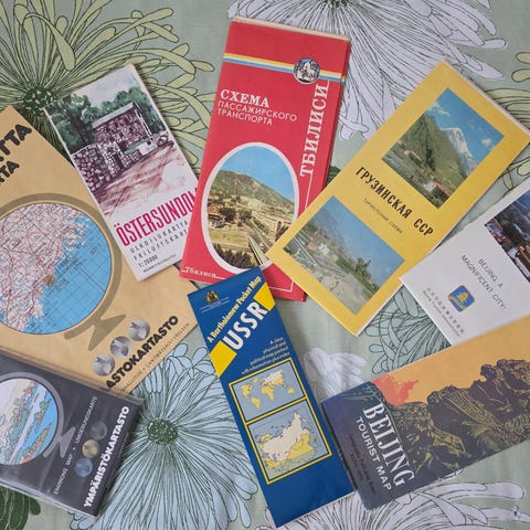 Oslon matkailuesitteitä ja karttoja 1960-luvun alusta.