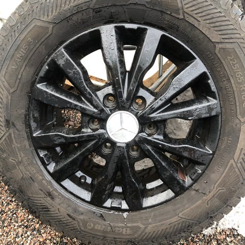 Auton mukana tulleet ylimääräiset kesärenkaat peltivanteilla, ovat olleet 2015 vw crafterissä mutta käy myös sprinteriin.