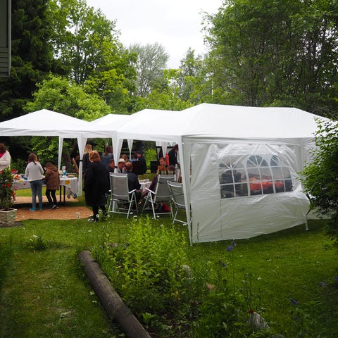 juhlateltta 4 X 8m , kerran käytetty, runko teräsputkea. Päädyssä vetoketjullinen ovi, myös sivuseiniä saa auki. Vedenkestävä, UV suojattu. pe- su 120,00e ,lisävuorokaudet 50,00e