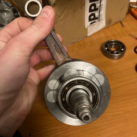 Siitä noin 1000km ajettu kampiakseli ei yhtään välyksiä muutenkin hyvässä kunnossa