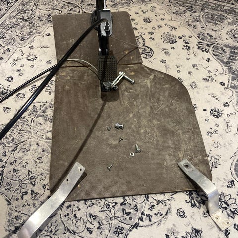 Käyttämätön auton poljin- ja vaihdekeppisarja. Sarjaan kuuluu kolme metallista poljinpintaa (kaasu, jarru ja kytkin), vaihdekepin nuppi, tupakansytytin, rengasventtiilien hatut, avaimenperä sekä kiinnitystarvikkeet.