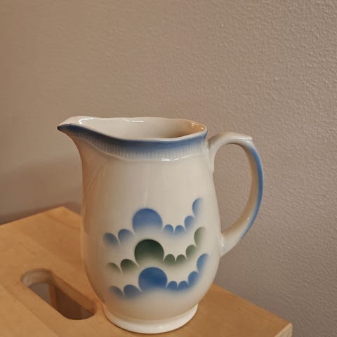 Myydään viehättävä vanha Arabian Pilvi -sarjan kannu (ns. Pilvikannu), jossa kaunis vihreä reunakoriste.