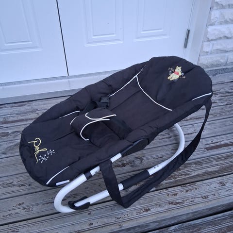 Hyväkuntoinen yhdellä lapsella käytössä ollut Hauck Alpha sitteri ja pienennin pienemmälle vauvalle. Sitterin saa myös saman merkin syöttötuoliin kiinni. Siistissä kunnossa, takapuolen kankaissa näkyy valumajälkiä pesun jäljiltä, mutta nämä eivät näy etupuolelle eivätkä vaikuta käyttöön.