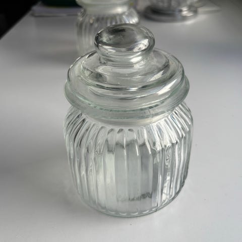 Ihanat Pentikin (nostalgia?) sarjan kannelliset lasipurkit ✨ kauniit, paksua lasia. Pienemmän halkaisija n. 10cm ja korkeus 15cm. Suuremman ø15cm ja korkeus n. 21cm.
