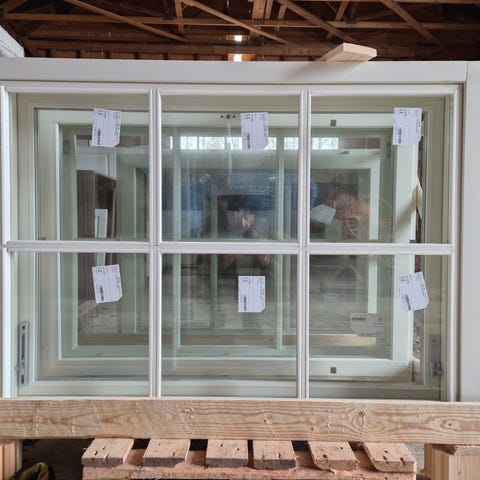 Skaala ikkuna leveys 1190 korkeus 1390 kiinteä ikkuna. Tuuletusikkuna korkeus 1390 ja leveys 390. Tummanharmaa. Asennus onnistuu lisähinnasta.