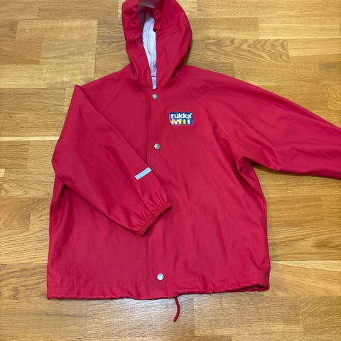 Lindexin vuorellinen kuratakki 116 cm. Hupun saa irti. Lämmin fleecevuori. Kulumaa takin hihoissa, mutta jää onneksi juuri saumaan, eli ei vaikuta vedenpitävyyteen. Lisäksi edessä nappilistassa pieni nirhauma.