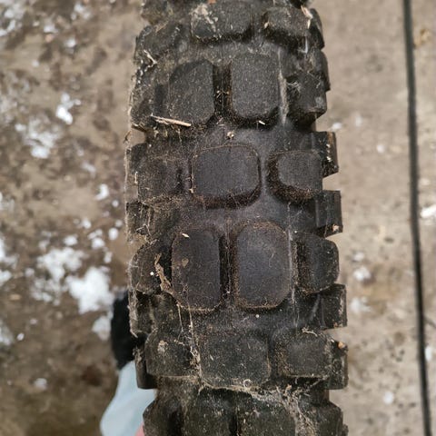 Ihan ok kuntoiset enskat 16,9mm akselille. 110/80-18 taka ja etu 90/90-21. Kuvassa näkyvät pienet nastat pelkästään takana saa pois ruuvattua. Postitus onnistuu ostajan maksaessa kulut