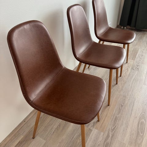 Ehjät ruokapöydän tuolit. Tekstiiliosa sävyltään vanha roosa. Jalat kullan väriset. Täysin ehjät, mutta istuinosissa pientä tahraa, joka todennäköisesti lähtee pesemällä. Myydään yhdessä. Nouto.
