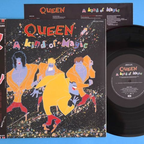 Queen – QueenQueen on saman nimisen englanninkielisen rock-ryhmän Queenin debyyttialbumi. Se julkaistiin vuonna 1973 ja sen tuotti John Anthony, Roy Thomas Baker sekä Queen.Kappalelista:A1 Keep Yourself AliveA2 Doing All Right A3 Great King Rat A4 My Fairy King B1 Liar B2 The Night Comes Down B3 Modern Times Rock 'N Roll B4 Son And DaughterB5 Jesus B6 Seven Seas Of Rhye Written-By – QueenJapanin ensimmäinen prässi LP. Mukana insert-kortti, jossa liner notes Kensho Onukin toimesta sekä englanninkieliset sanoitukset transkriptioina.Kunto:LP / Mint (ihastuttava)OBI / Mint (ihastuttava)Cover / Mint (ihastuttava)Booklet / Exceöllent ( hieman kellertävä yläreunasta)Ymmärräthän, että havaitsemisessa on yksittäisiä eroja. ★★★ Ensimmäinen "Must-Have"! Queen keräilijöille ★★★★★★ Jokaisen harvinaisen singlen & LP:n yhteydessä lisään uuden sisävuorauksen happovapaasta muovista, jotta voit nauttia singleistä & LP:stä pitkään★★★ Saat kaikki arvokkaat huutokauppasi erityisen LP-laatikon mukana, jotta mikään ei voi vahingoittaa LP:täsi kuljetuksen aikana (katso kuvat)★★★ Jokainen LP/Single pestään uudelleen erikoissaltaan record-washing-koneella (katso kuva) ennen lähettämistä (tämä koneisto ei kuulu toimitukseen)★★★ Joka viikko meillä on tarjolla lukemattomia mielenkiintoisia Collector LP:itä/CD:iä... Memorabiliaa... tarjolla, vain klikkaa seuraavaa painiketta ja näet kaikki tarjouksemme.Myyjäkohtainen tarjous:BLACKGOLD-MEMORABILIA & REAL TO REAL AUTOGRAFFITITKiitos mielenkiinnosta.Katso muut harvinaiset esineemme nykyisissä ja tulevissa huutokaupoissa Catawiki★★★ Ei toimitusta Kanarialle