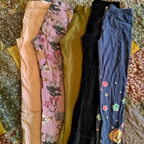Hyväkuntoinen housupaketti 5 kpl. Mm. Frozen Elsa ja Anna. Molon laadukkaat housut. Lindex polvipaikat. Ihanat perhosprinttiset.