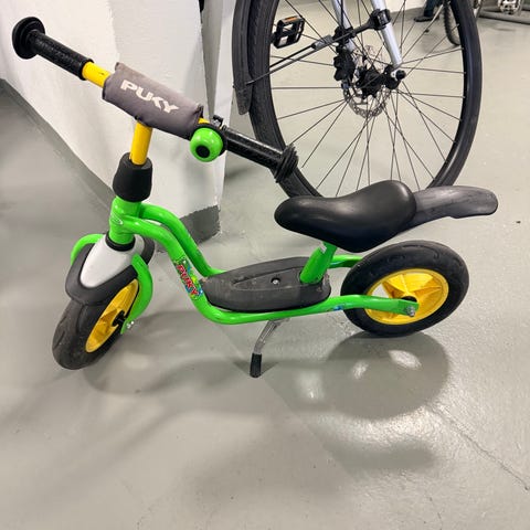 Puky potkupyörä lapsille, rengaskoko ehkä 10”. Säädettävä satula. Sopii tasapainon ja pyöräilytaitojen harjoitteluun pienille lapsille.