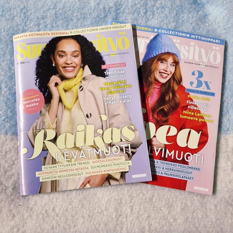Suuri Käsityö aikakauslehdet, sekalainen lehtipaketti. Paketti sisältää useita eri numeroita, joissa käsitellään käsityöaiheita, kuten ompelua, neulontaa ja muita käsityöohjeita. Lehdet ovat suomenkielisiä ja sopivat käsityöharrastajille inspiraation ja ohjeiden lähteeksi. V 20-24 lehdet. Kaikissa kaavat tallella. 10€ kaikki kerralla. Nouto Hennala