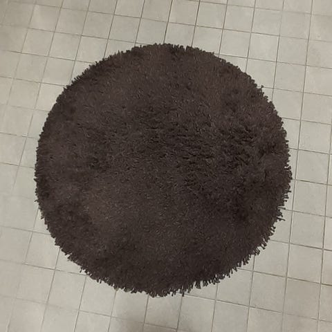Pyöreä valkoinen nukkamatto. Väri on vaalea, luonnonvalkoinen.