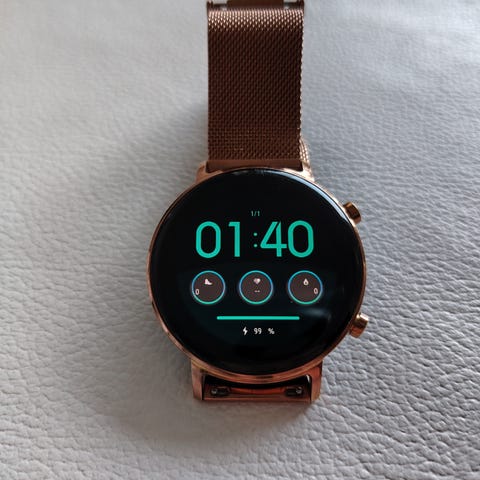 Huawei Watch GT 3 -älykello, 42 mm kokoinen pyöreä kellotaulu. Kellossa on kultainen metallinen verkkoranneke pikalukolla. Mukana latauskaapeli ja magneettinen latausalusta. Soveltuu ranteeseen puettavaksi älykelloksi arki- ja liikuntakäyttöön, sisältää älypuhelimeen yhdistettävän käyttöliittymän ja kosketusnäytön.