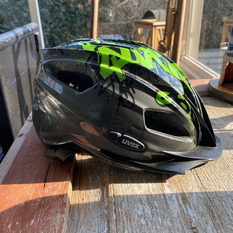 Occano pyöräilykypärä lapselle. Kypärässä on säädettävä kiristyspanta takana ja leukahihna muovisoljella.