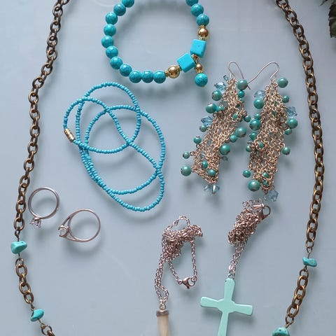 Turkoosi korusetti, yhteensä 11 korua.