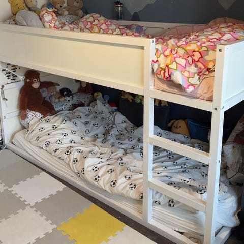 Lapsi kasvoi liian isoksi tähän hyvin palvelleeseen kerrossänkyyn, joten on aika luopua. Parhaiksi puoliksi tässä sänkykokonaisuudessa sanoisin alaosassa olevan säilytyslaatikon, johon mahtuu lapsen puoli omaisuutta.
