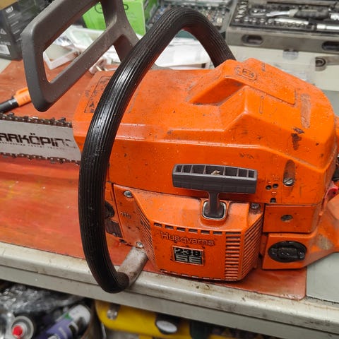 Moottorisaha. Ollut muutaman vuoden varastossa käyttämättömänä, vaatinee ainakin polttoaineen vaihdon.