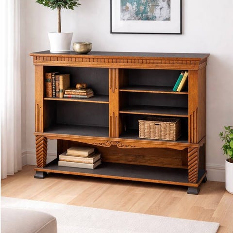 Kunto on hyvä, mutta käytön jälkiä löytyy hieman. Hyllytasossa on kohta, jossa auringonvalo on vaalentanut pintaa (näkyy kuvissa).