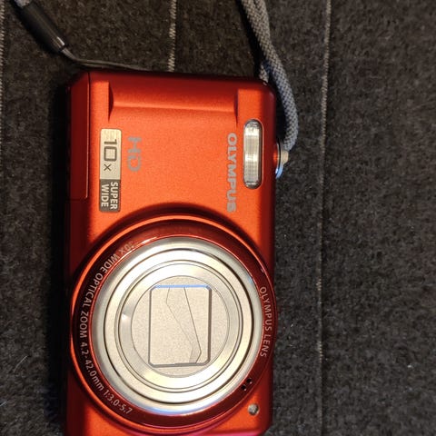 Olympus FE-20 digitaalinen kompaktikamera. Hopeanvärinen runko, etupuolella sisäänvedettävä objektiivi ja takapuolella LCD-näyttö sekä perinteiset painikkeet ja valikkorulla. Kamera soveltuu yleiseen valokuvaukseen, kuten arki- ja matkakuvaukseen. Mukana rannelenkki helpottamaan kameran käsittelyä ja kuljettamista.Mukaan suojapussi. Nouto/Postitus