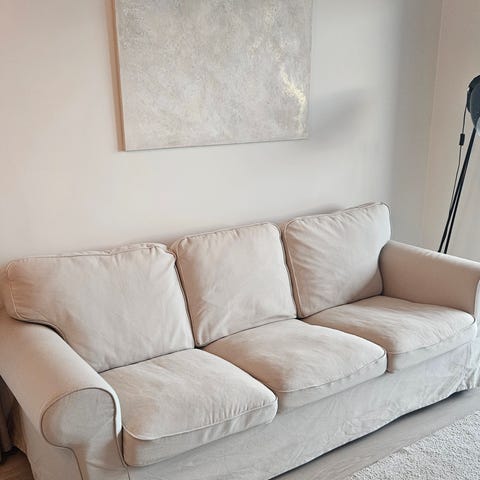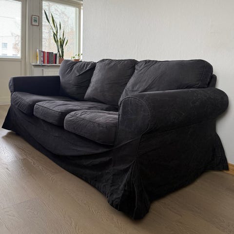 Ektorp nojatuoli. Muuten hyvässä kunnossa, mutta päälliset hieman likaiset. Voi irrottaa ja pestä koneessa.
