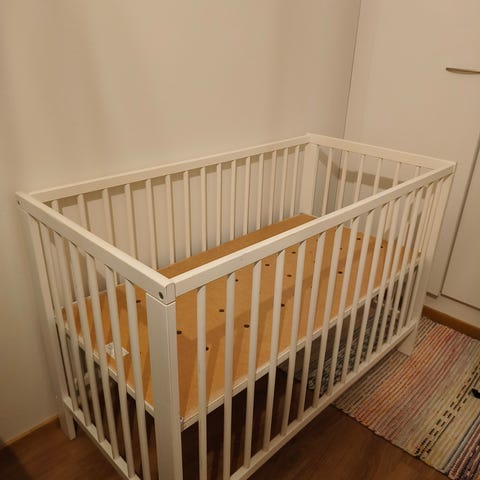 Myydään Ikean pinnasänky. Ostettu käytettynä vuonna 2023. Vankka ja hyvä sänky ollut, nyt jäi tarpeettomaksi taaperon siirryttyä isompaan sänkyyn. Maali paikoitellen lähtenyt laidoista, voi halutessaan paikata maalilla piiloon. Jonkin verran käytön jälkiä.