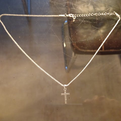 Hopeinen kaulakoru ristillä
