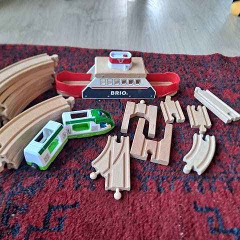 Brio Junaradan osia, jonkun aikanaan valkoiseksi maalaamia. Iso setti jossa mm. paljon perusratoja ja neljä siltaa. Kunto ei fiini mutta ehjiä ja toimivia.