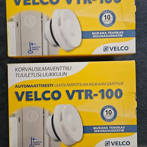 Käyttämätön Velco VLR-100 tuloilmaventtiili. Venttiili on tarkoitettu tuloilman tuomiseen sisätiloihin ja se säätää ilmanvaihtoa automaattisesti ulkoilman kosteuden mukaan. Pakkaus sisältää venttiilin ja siihen kuuluvat osat seinäläpivientiä varten. Soveltuu asennettavaksi esimerkiksi asuntoihin ja muihin tiloihin, joissa tarvitaan hallittua tuloilmanvaihtoa.