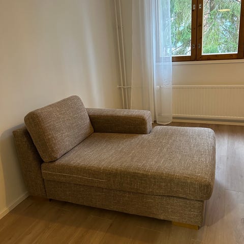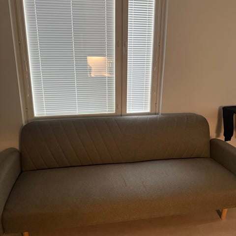 Alle kaksi vuotta sitten ostettu, erittäin vähällä käytöllä ollut vuodesohva. Ehjä ja siisti. Taloudessa ei eläimiä.